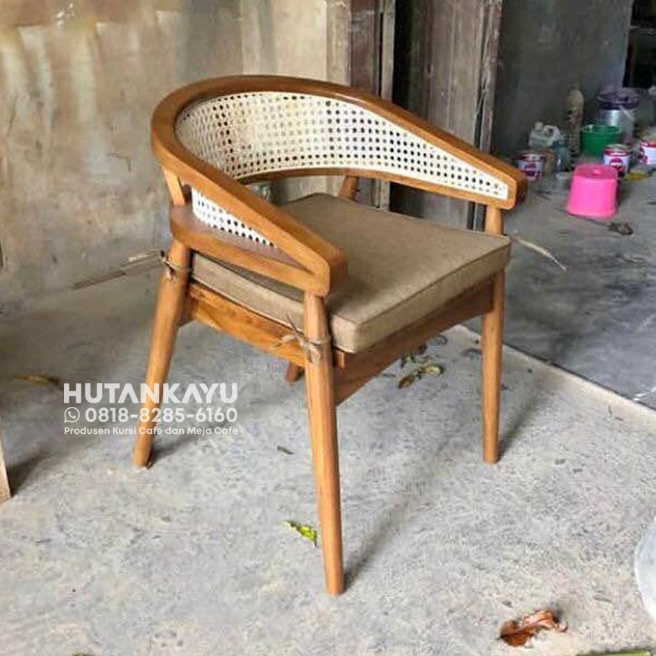 Kursi Cafe Minimalis Jati Mix Rotan Murah Resto, Kafe, Warung, Restoran, Kayu Jati Murah